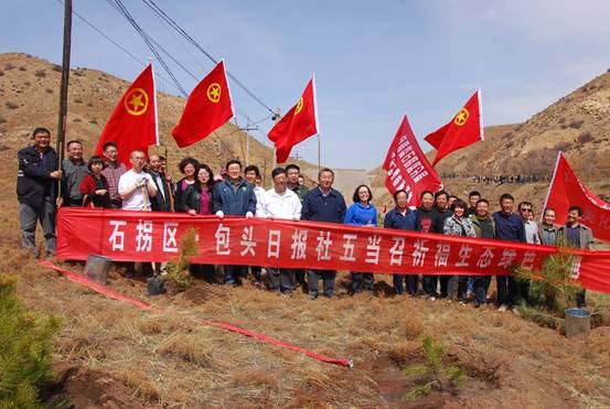 (石拐区与包头日报社共同打造的五当召祈福生态林植树现场)