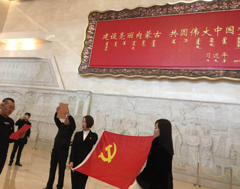 第一站学习团到达内蒙古博物馆,参观了内蒙古古生物陈列”、“内蒙古历史文物陈列”、“内蒙古革命文物陈列”、“内蒙古民族文物陈列”。一起学习了内蒙古生物进化的历程和戈壁的变迁,匈奴、东胡、鲜卑、突厥、契丹、党项、蒙古等八个民族的历史,内蒙古人民从“五四运动”到新中国成立的革命斗争史以及蒙古族、鄂伦春族、鄂温克族、达斡尔族人民创造的独具特色的民俗文化。在脑包沟党支部书记贾斌的带领下,大家一起面对党旗进行了宣誓,重温了誓词。站在历史高度,审视发展历程,在以党的十九大精神指引下,广大党员立足本职岗位,继续再接再厉,勇攀高峰,为既定目标不懈奋斗。